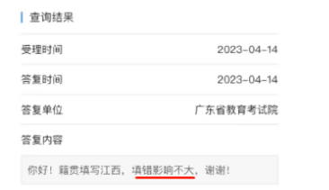 这个并没有明确,其实这些并不是重点,重点是你的姓名、身份证号码等个人身份信息,以及体检结果的真实性。甚至你的籍贯填错了也是影响不大,考试院也回复过这个问题。