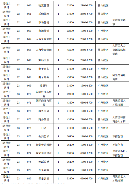 广州工商学院退役大学生士兵专插本2022年招生简章