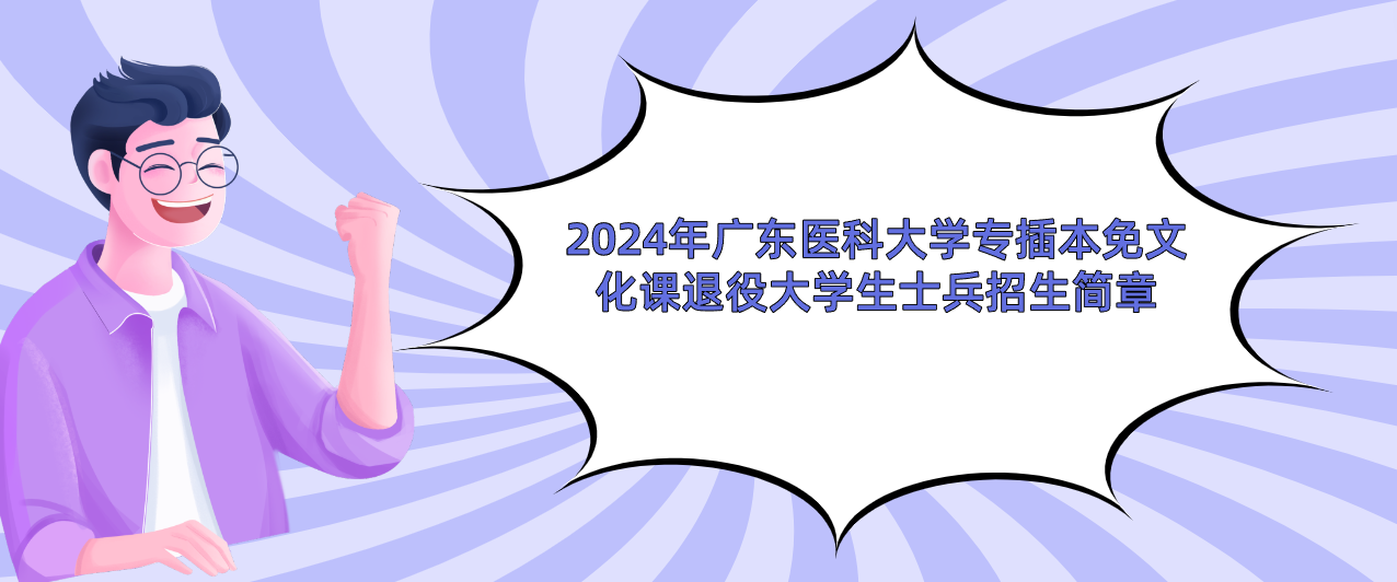 【导读】2024年广东医科大学专插本免文化课退役大学生士兵招生简章,下面广东普通专升本网小编给大家整理了,一起来看看吧。